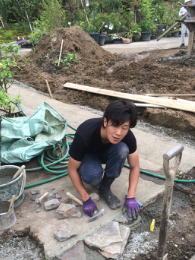 入社8年。つくばいや石組み、石張りなどの技術を習得し、職人道を躍進中。植物も勉強しており、 頼りになる存在。まじめで、丁寧な仕事ぶりと愛嬌がいいのでお客さんにも人気です。