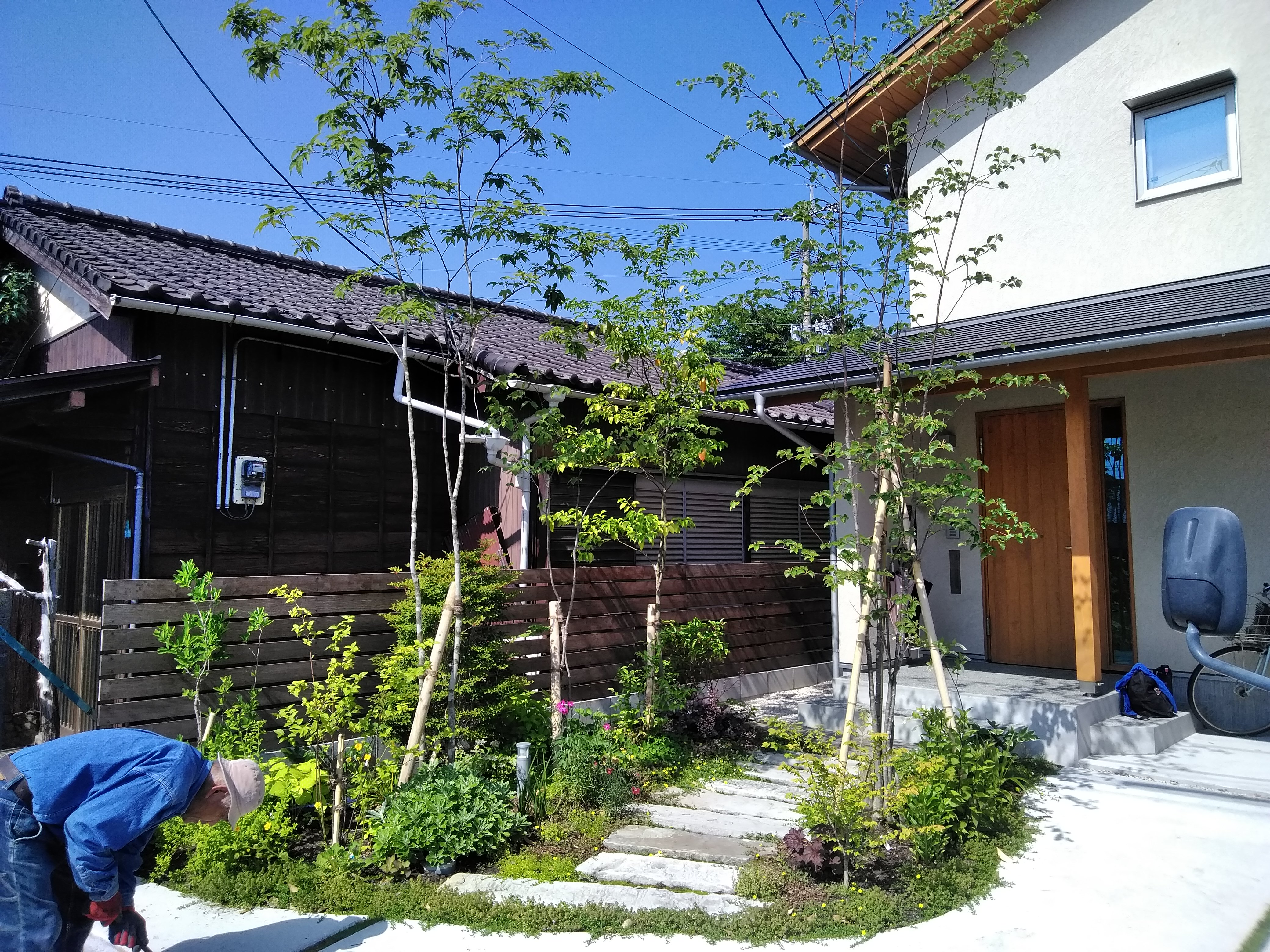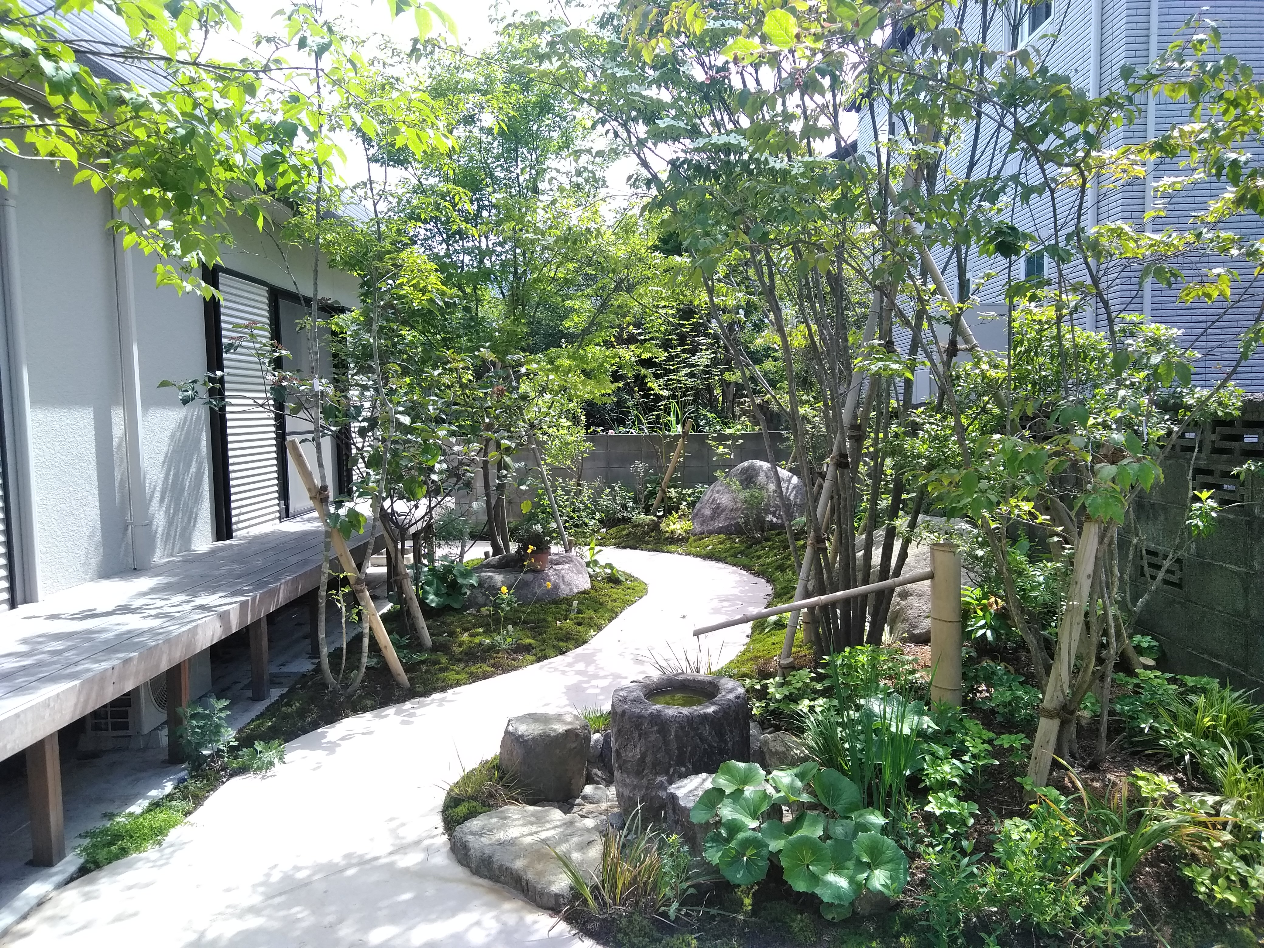 お客様の思い出や記憶に耳を傾ければ、どんな小さなスペースにも秘められている庭づくりの可能性。季節感と安らぎを感じていただけるようにという思いで庭づくりに情熱を注ぎ、お庭から、商業施設の緑化工事まで、自然木と草花を生かした造園を行っています。