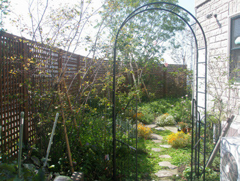 ウッドパネルで囲み、アーチを設置することで生まれる庭空間